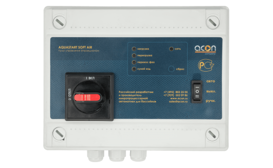 Обеспечивает защиту от перегрузки по току, от перекоса, или обрыва питающих фаз и от работы по «сухому ходу» (при отсутствии воды).