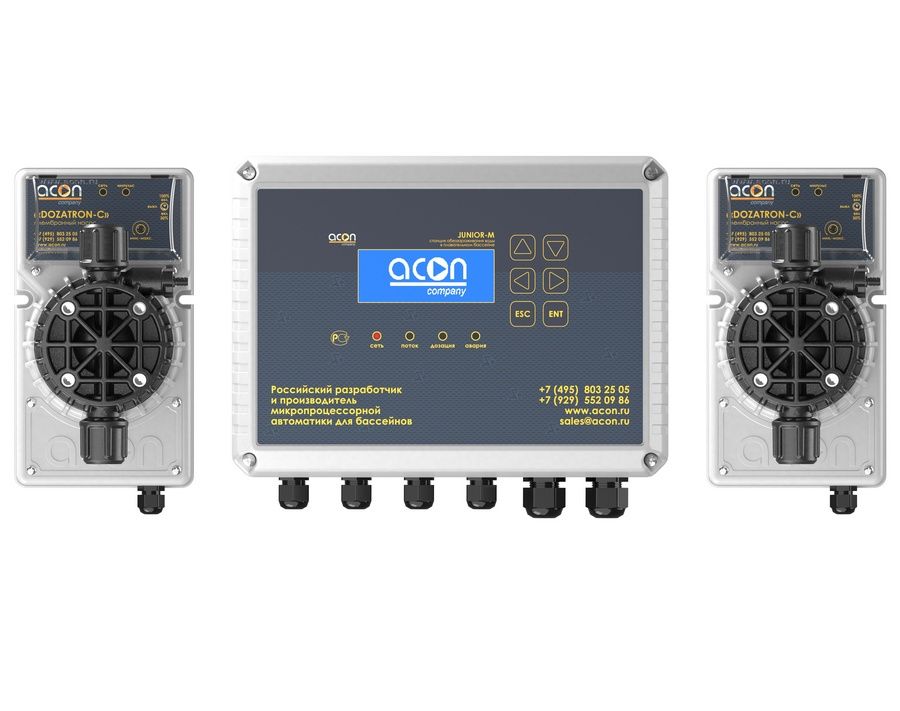 Универсальная станция дозирования для контроля и поддержания рН (водородный показатель) и Rx (окислительно-восстановительный потенциал) воды плавательного бассейна.