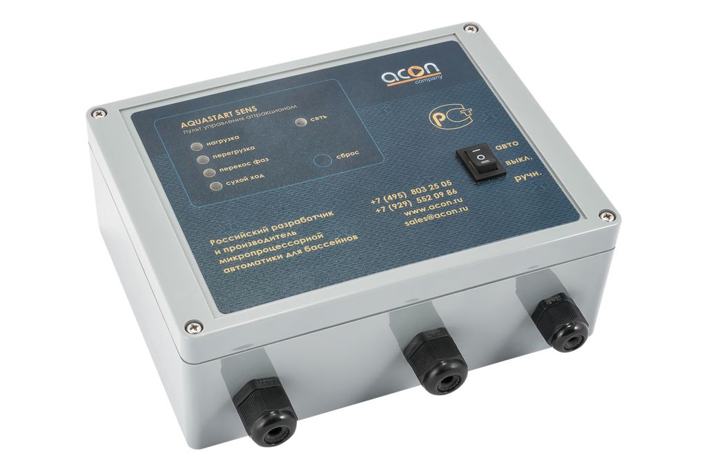 - Обеспечивает защиту от перегрузки по току, от перекоса, или обрыва питающих фаз и от работы по «сухому ходу» (при отсутствии воды).